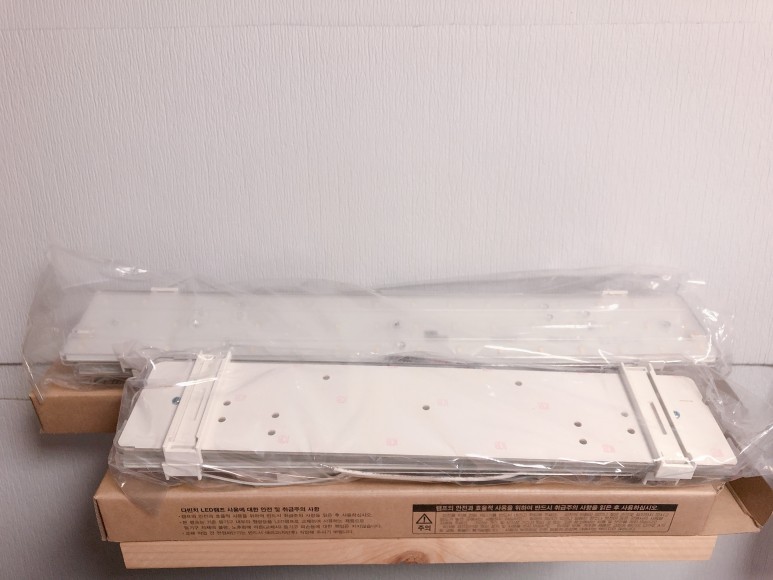 흠~ 택배를 받고 생각보다 많이 무겁진 않았고, 깨질까봐 조심해야하는 형광등에 비해 뽁뽁이로 한바뀌 두른 상자를 보니 LED는 뭔가 가벼우면서도 튼튼하구나(?) 라는 생각을 했어요.