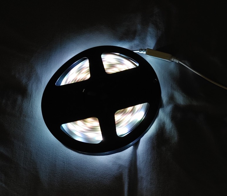 루미케이블이 돌돌 말린 상태로 전원을 켠 모습입니다..