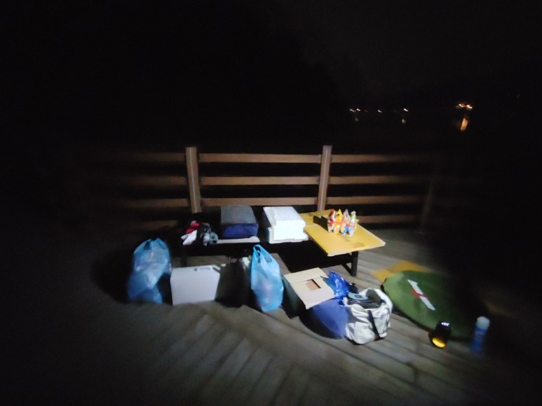 저 멀리 텐트 한번 꾸며보겠다고 살짝 걸쳐 논 루미케이블 ㅋㅋㅋ