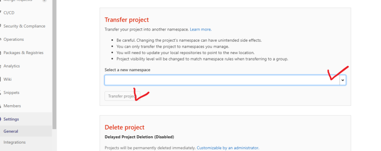 Transfer project 메뉴를 통해