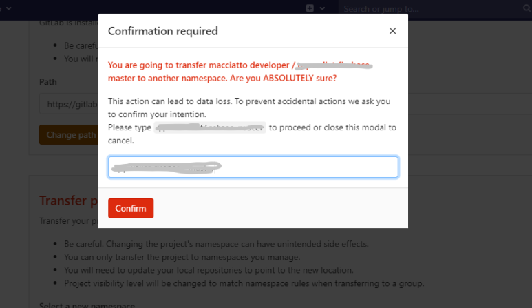해당 사진과 같이 프로젝트명을 동일 하게 입력하라는 창이 나오고