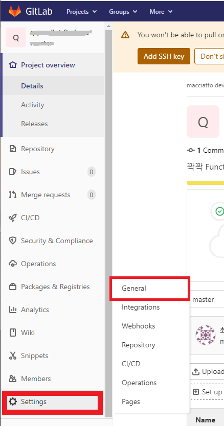 Settings 메뉴의 General 메뉴로 접속합니다.