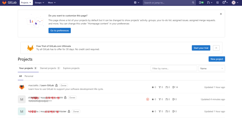 변경을 원하는 프로젝트를 클릭하여 접속 후,
