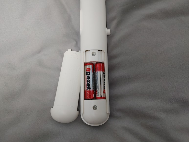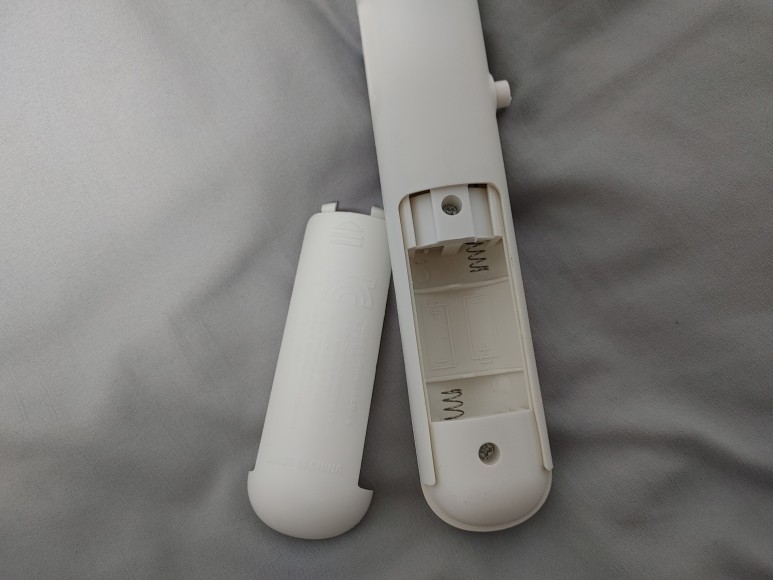 두 손으로 밀면 건전지를 넣을 수 있는 뚜껑이 열립니다.