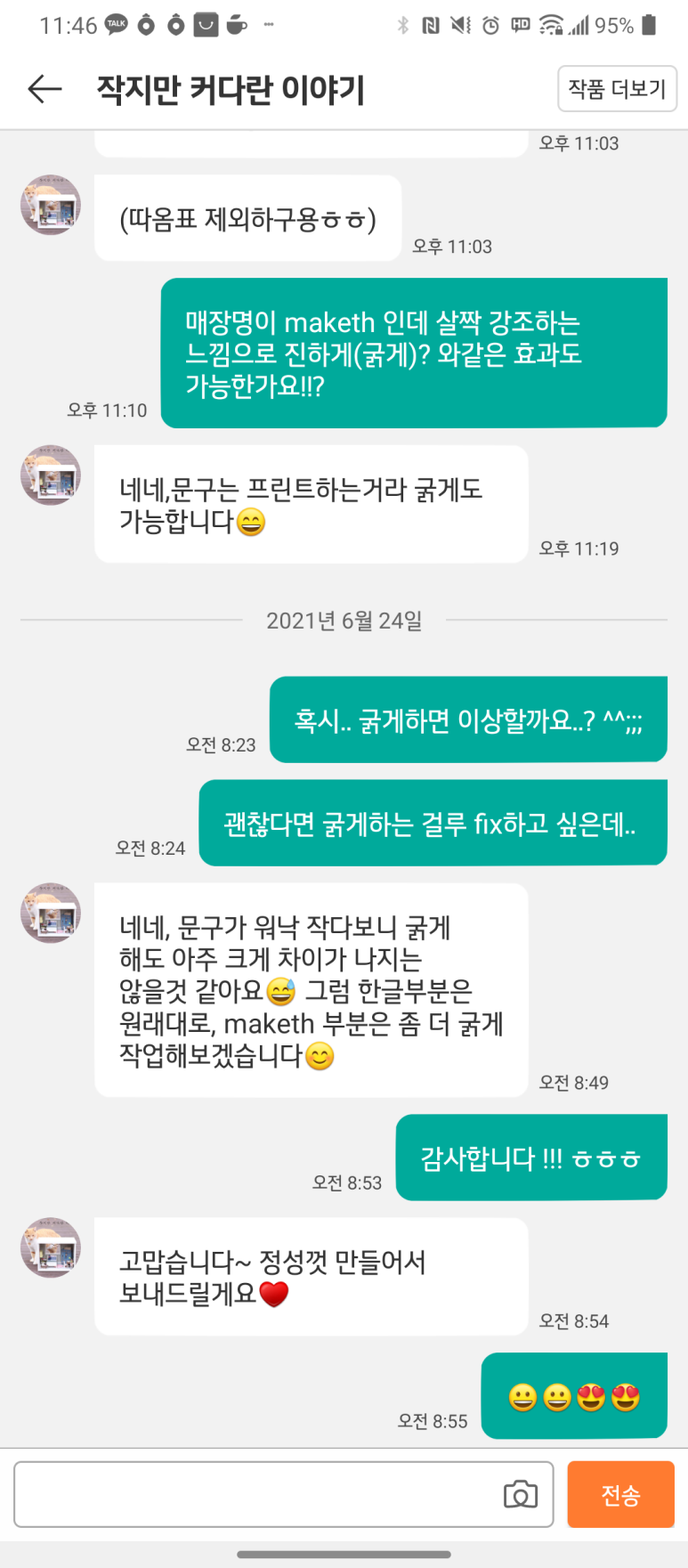 시간을 보면 알겠지만 늦은 시간까지도 친절하게 답변해주시는 사장님 ㅠㅠ