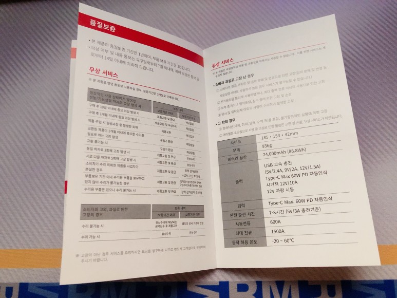 역시 고가의 제품답게 다양한 무상 서비스를 1년 이내 가능하다고 설명되어 있고,