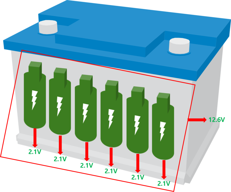 일반적으로 2.1V의 전압을 직렬도 이어 12.6V의 전압을 머금고 있다.