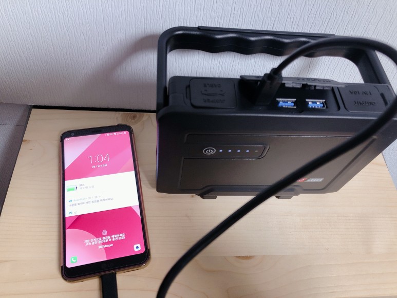 충천량 확인은 전원 버튼을 한번 눌러주거나, 뭔가가 연결이 되면 표시등에 자동으로 불이 들어오더라고요.