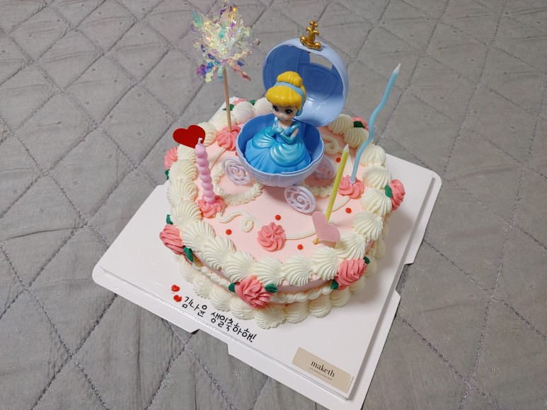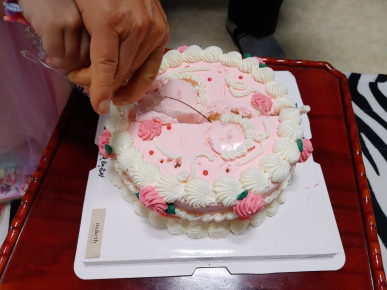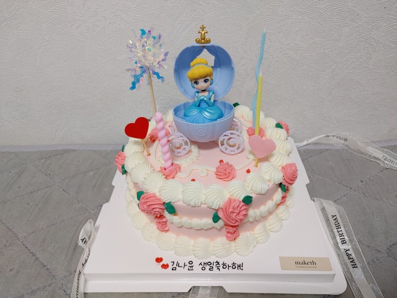 케이크는 핑크풍으로 부탁드렸더니.