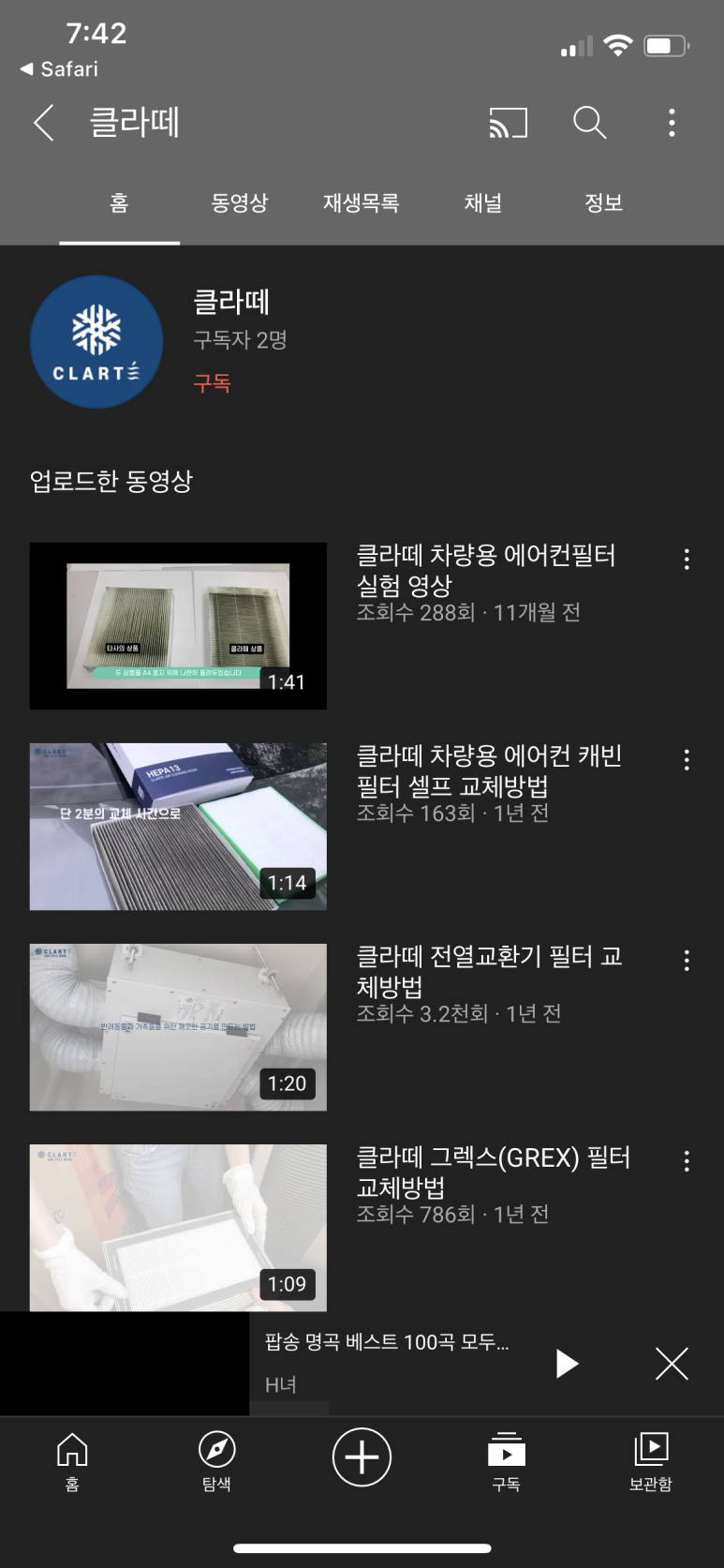 클라떼 차량용 에어컨 필터 교체 싼타페 더 프라임