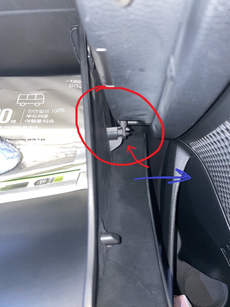 2개의 양쪽 플라스틱 큰 볼트를 풀어주면