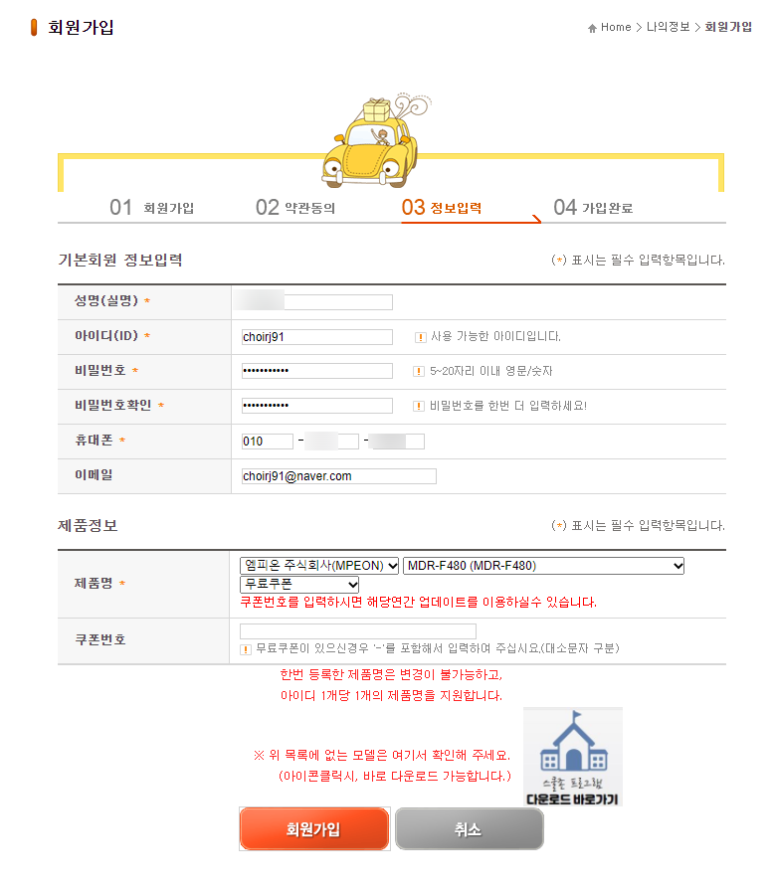 여기에 바로 쿠폰번호 입력을 하고 가입 완료!