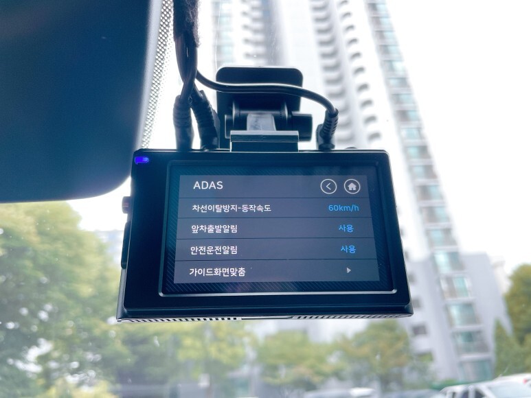 ADAS는 차선이탈알림, 앞차출발알림, 안전운전알림, 가이드설정 등이 있었다.