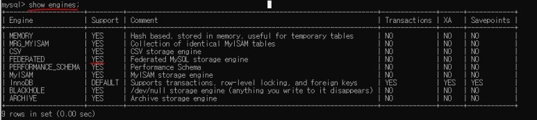 show engines;
