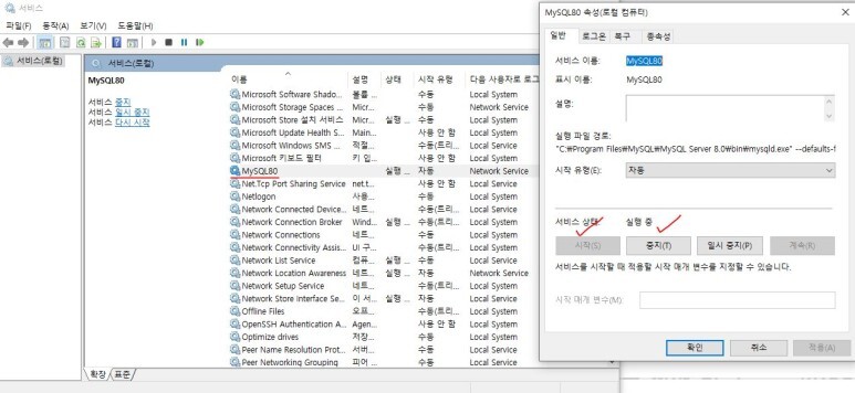 MySQL80 항목을 찾아서,