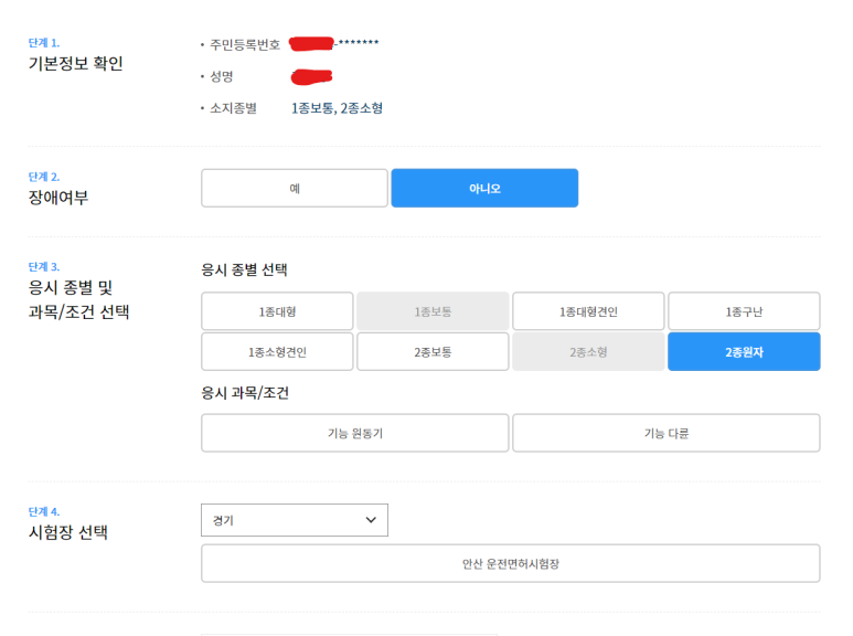 아래와 같이 응시 접수를 할 수 있다.