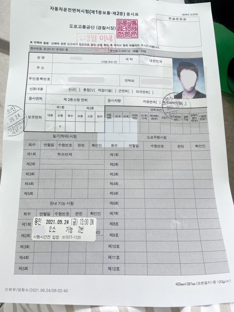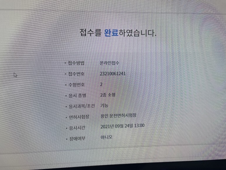 용인 면허시험장에서 시험을 봤는데