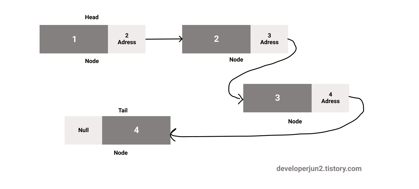 마지막 노드를 Tail 이라고도 부른다고 합니다.