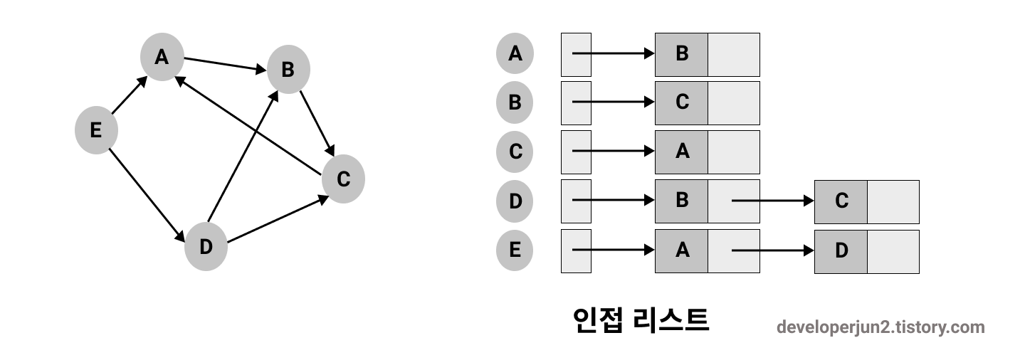 인접 리스트 그래프로 구현해보겠습니다.