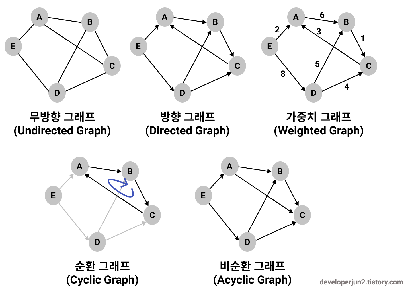 비순환 그래프 - 순환이 없는 그래프.
