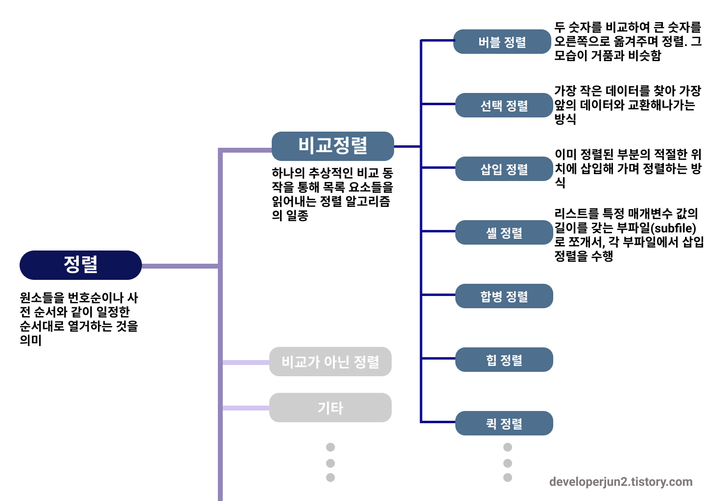 이미 알아본 삽입, 버블, 선택 정렬에 비해