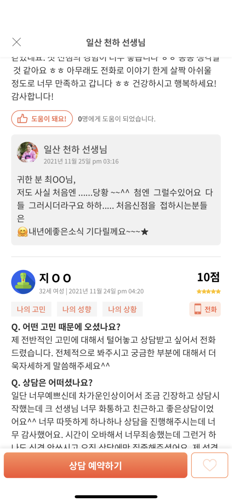일산 천하 선생님 : 기다리고 있었어요. 사주 좀 불러주세요.