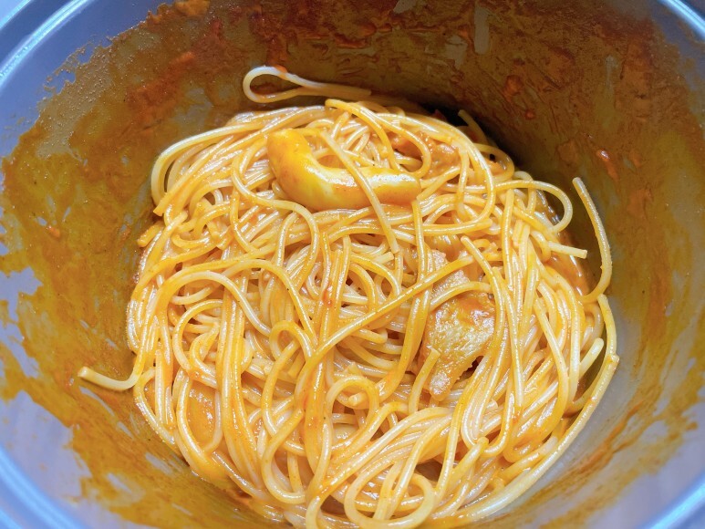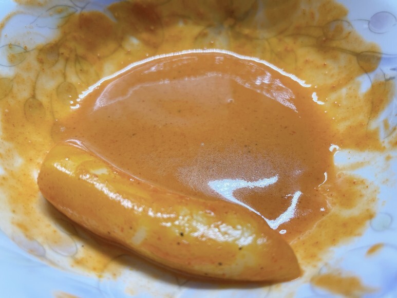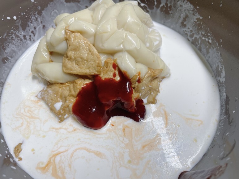 저 중간에 뻘건 떡볶이 소스..