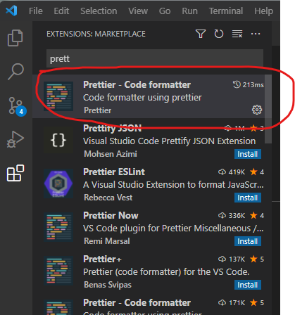 prettierr를 설치 하지 않았다면