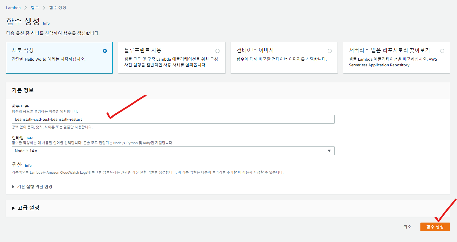 그리고 람다가 직접 beanstalk을 재실행해줄 수 있는 실질적인