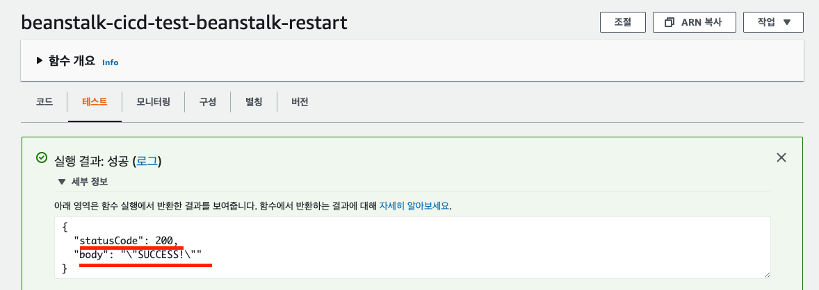 5. Lambda 함수를 통해 Beanstalk 재실행
