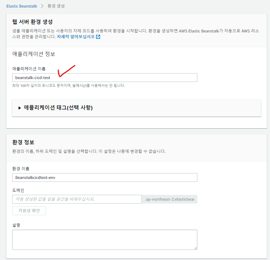 그리고 Beanstalk 도 미리 만들어줍시다!!