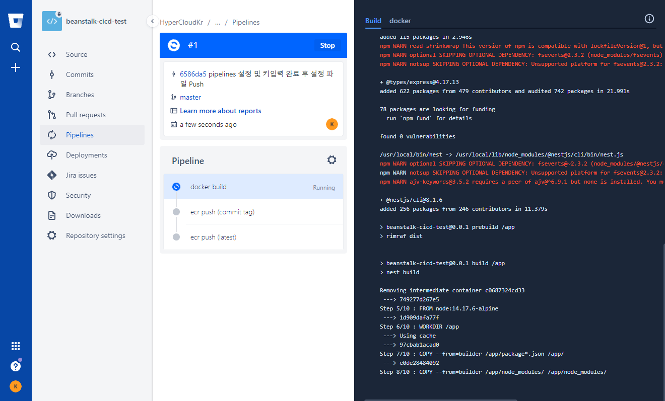 저흰 다시 Bitbucket pipeline을 위한 세팅을 위해