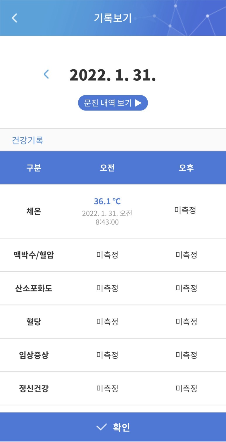 그에 맞춰 체온을 재고 앱에 기록을 하였다.