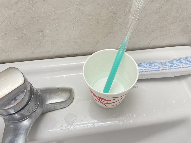 거기에 칫솔을 넣어 세워두고 사용하면 된다.