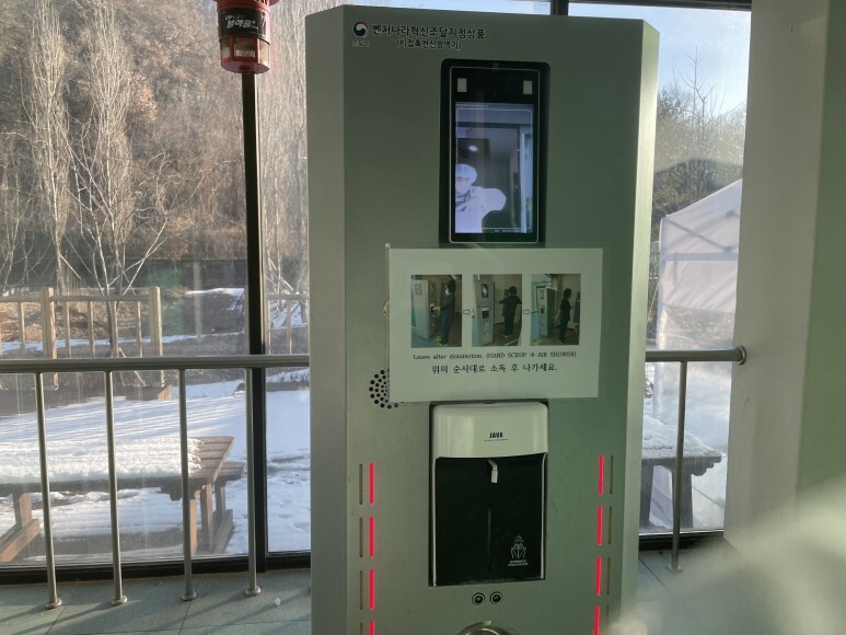 옷에 소독 스프레이를 한껏 뿌리고 나서야
