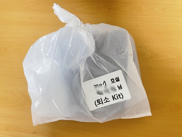 비닐봉지 안에는 퇴소를 위한 퇴소복이 있었고