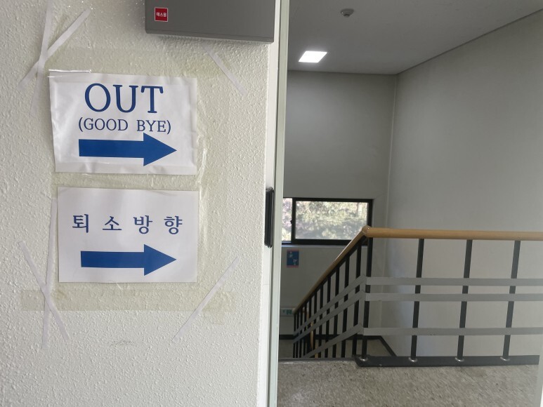 2명씩 퇴소 절차를 밟아 외부로 나가는 듯하다.