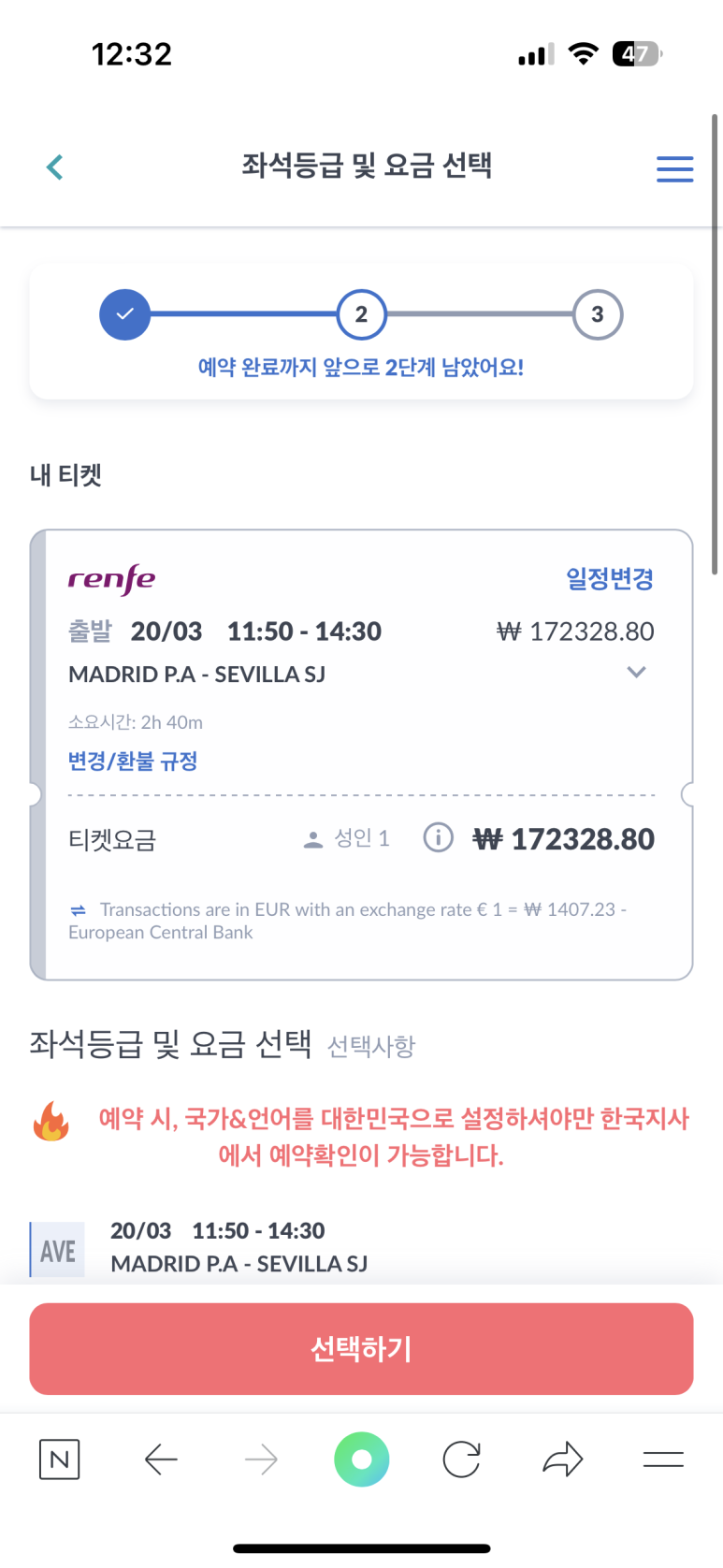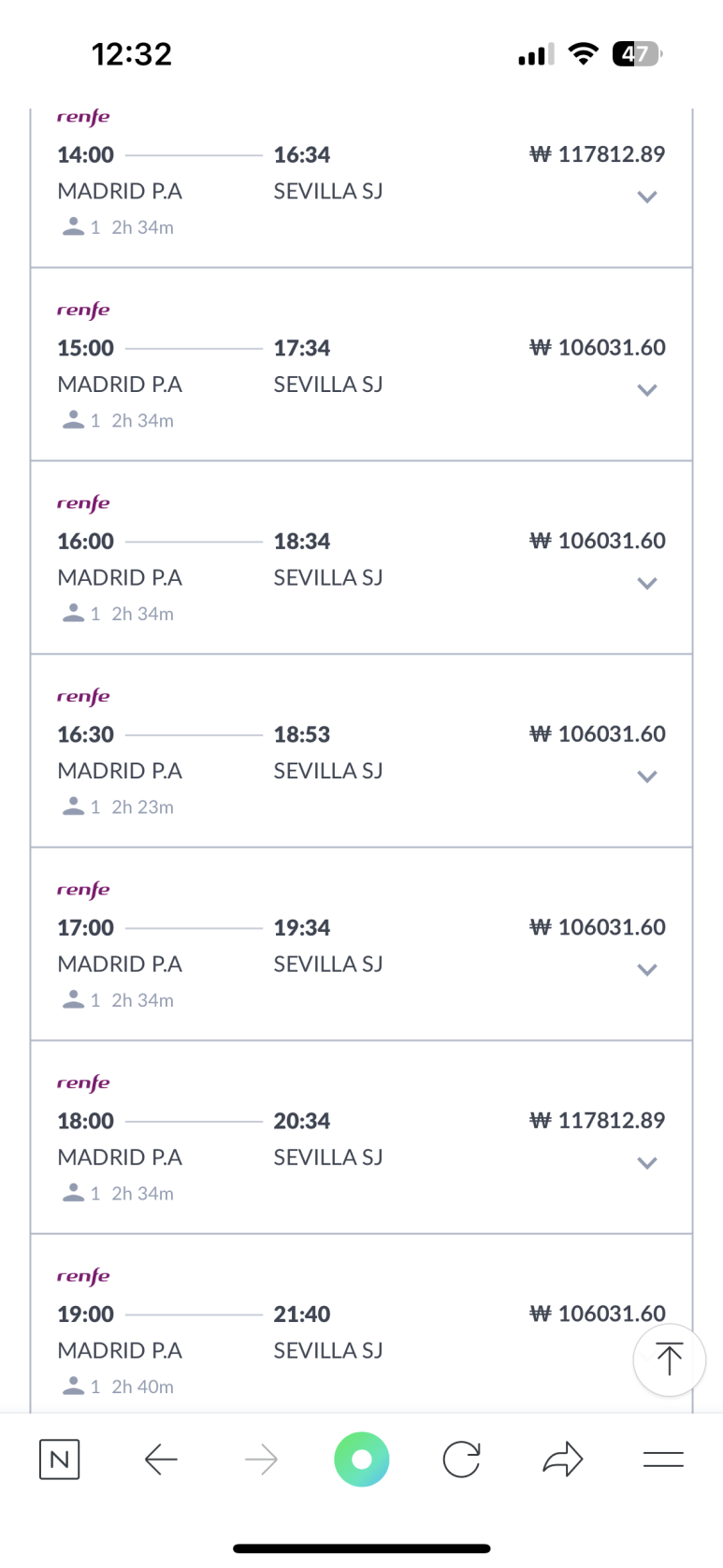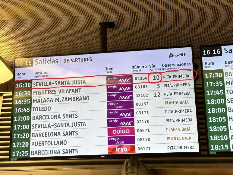 나는 마드리드 > 셀비야 행으로
