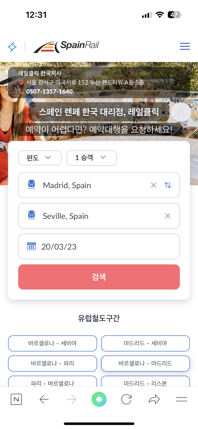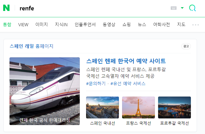 네이버에서 renfe를 검색하면 한국어 예약 사이트가 나온다.
