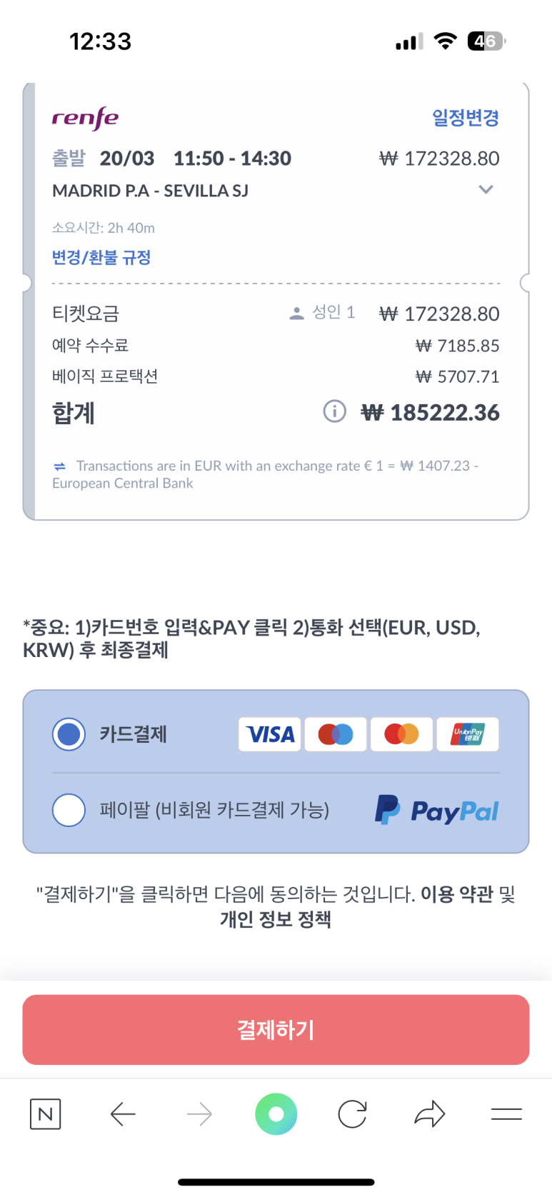 그리고 결제하기!