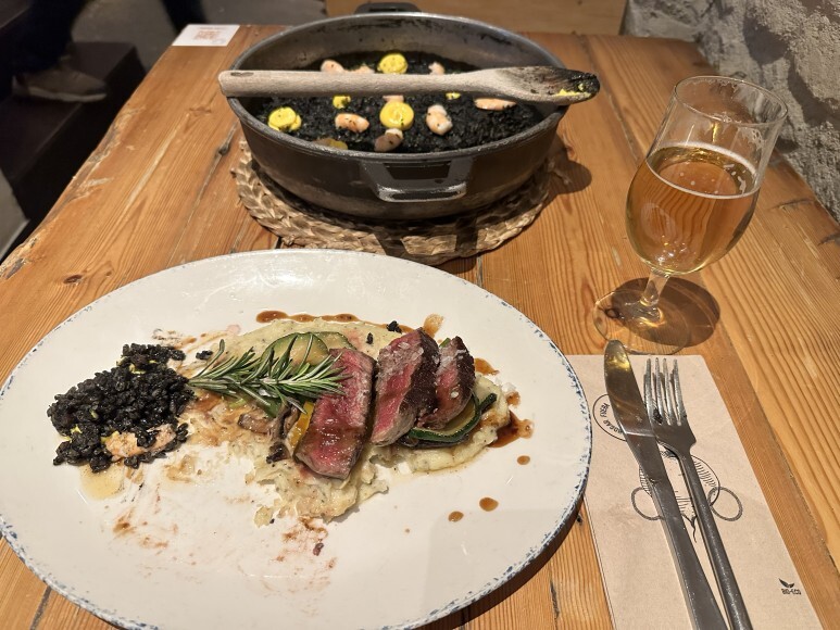 스테이크는 3덩이가 남을 때쯤 빠에야가 도착했다.