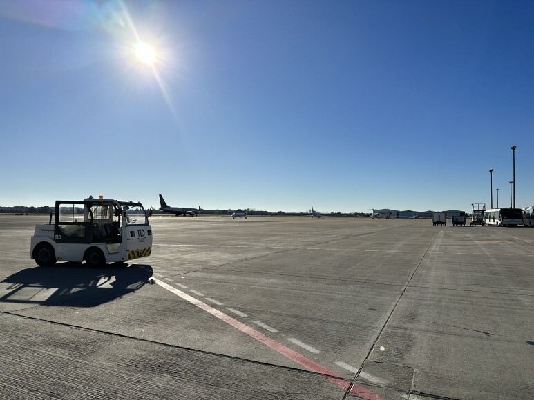 비행기도 작아 보이고 비행기 도로를 걸어갈 수 있는 이 상황이