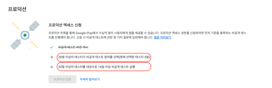 비공개 테스터를 필수로 20명을 모아 테스트를 진행해야 한다고 합니다.