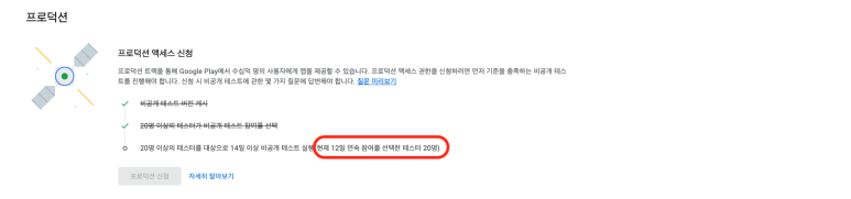 비공개 테스터를 필수로 20명을 모아 테스트를 진행해야 한다고 합니다.