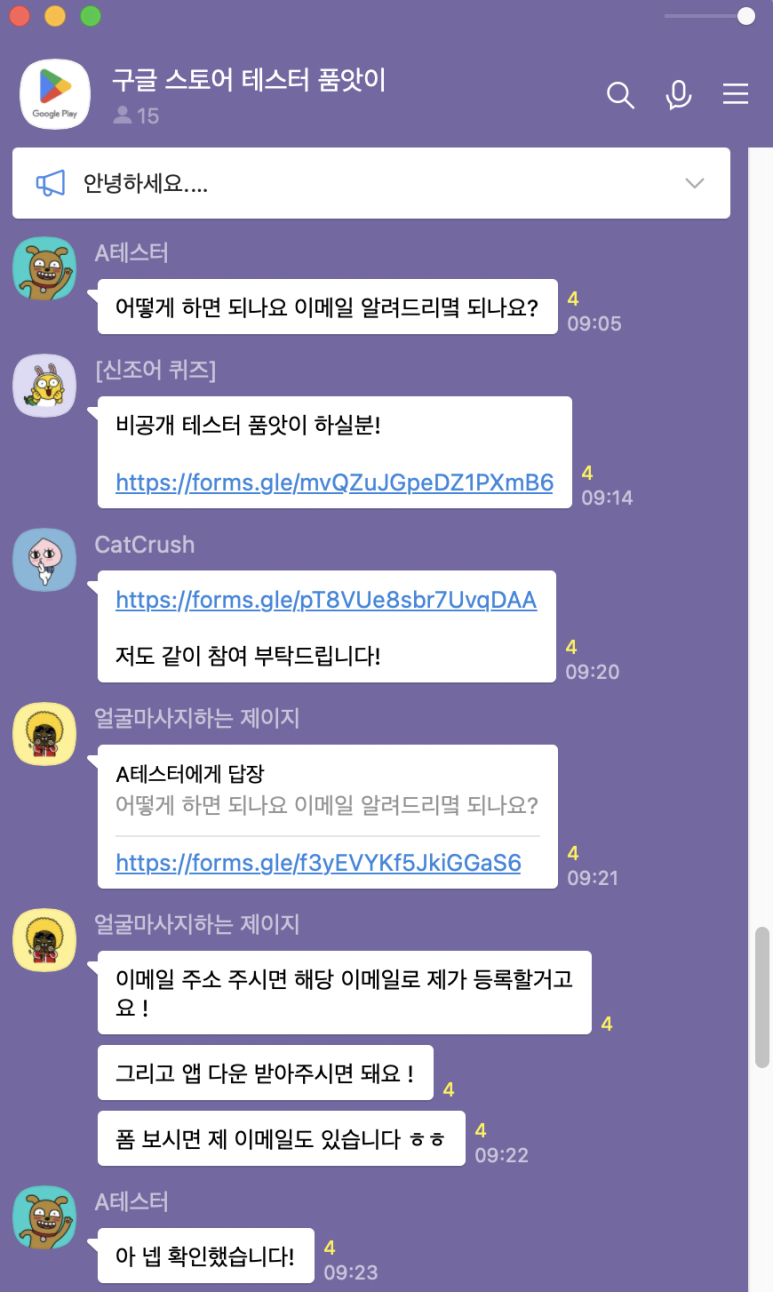 구글 스토어 테스터 품앗이