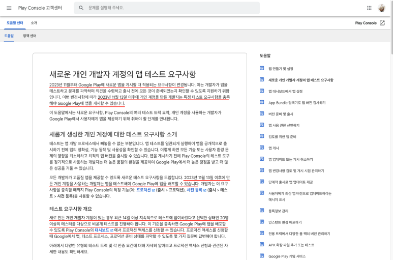 새로운 개인 개발자 계정의 앱 테스트 요구사항