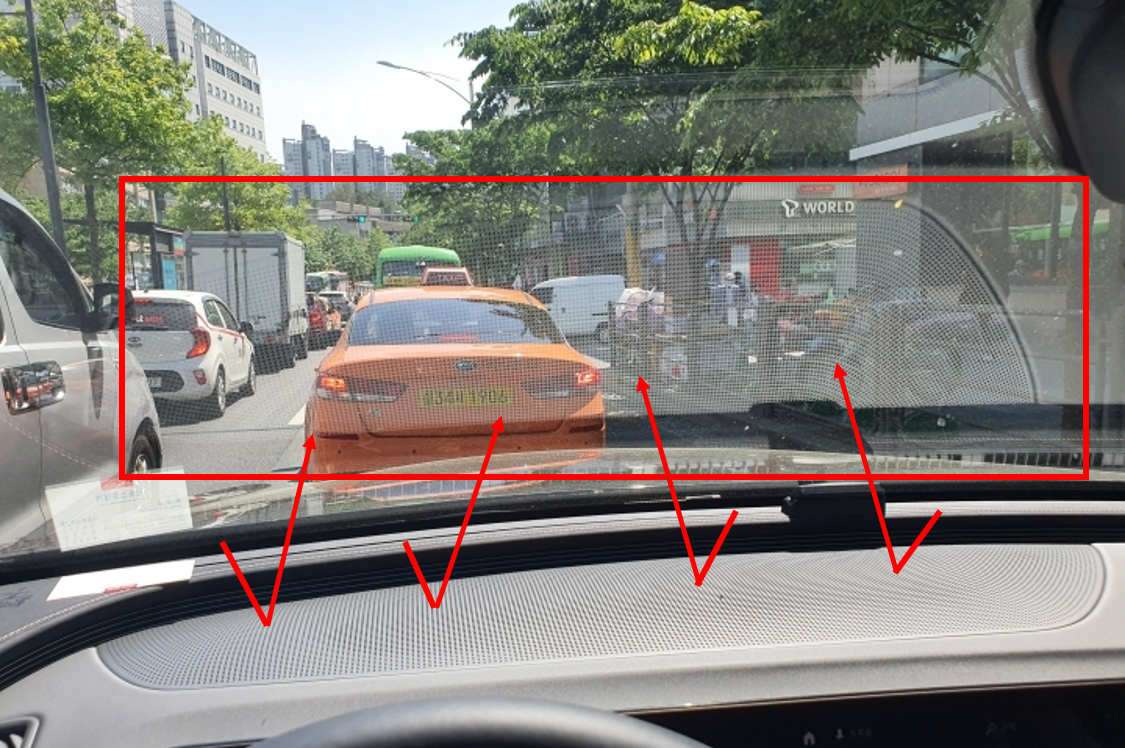 전면 유리창으로 반사하여 시야를 가리는 것을 알 수 있다.