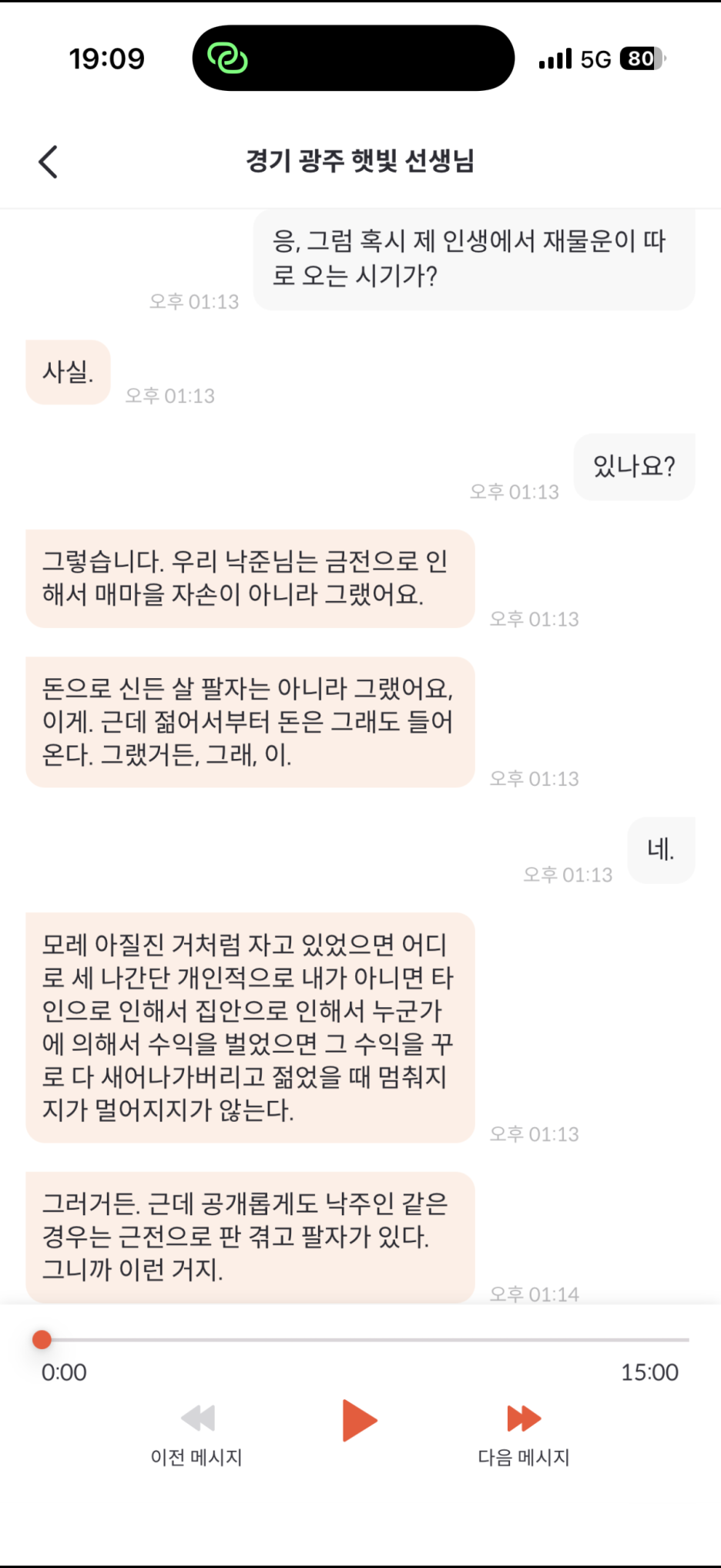 그래서인지 전화 신점이 15분이었는데도