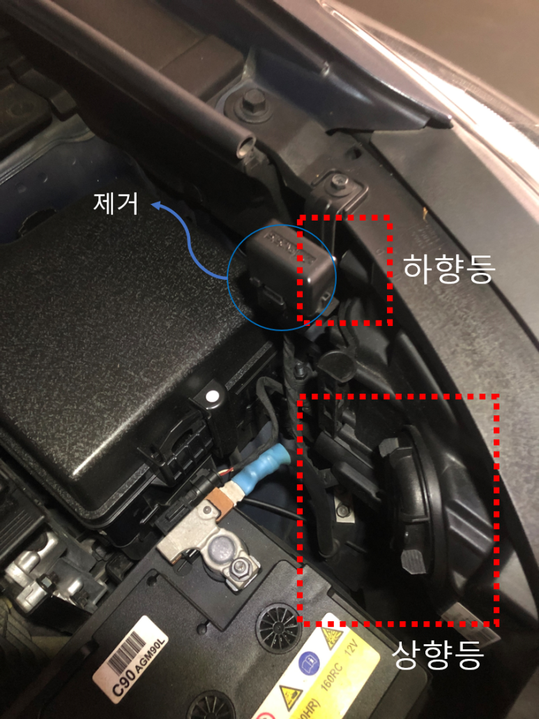 교체 영상 촬영을 위해 상향등을 활용하여 장착방법을 알려드립니다.