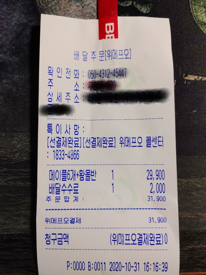 위메프오에서 5천 원 할인쿠폰이 있길래 이번 기회에 한번 시켜 먹어보자!